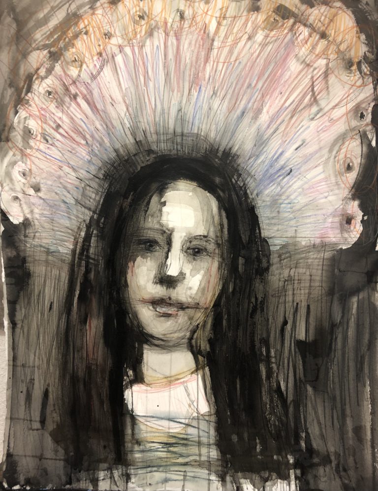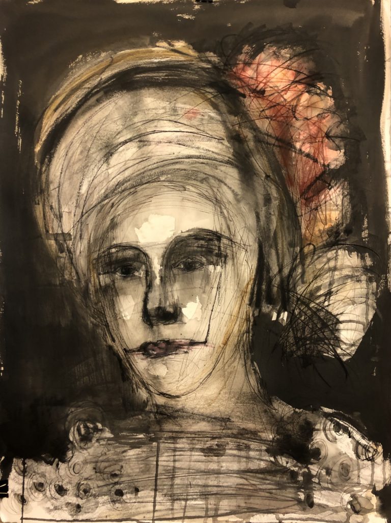«Ma peinture est avant tout intuitive et il m’est difficile de mettre des mots sur ce que je fais. Et la peinture est sans doute d’ailleurs ma véritable langue maternelle, celle qui me permet le mieux de m’exprimer. Mon inspiration est puisée dans les musées que j’ai longuement fréquentés. Par ailleurs, mon ancien métier, restauratrice de tableaux, est un substrat dans lequel viennent évoluer mes rêves et mon imaginaire.